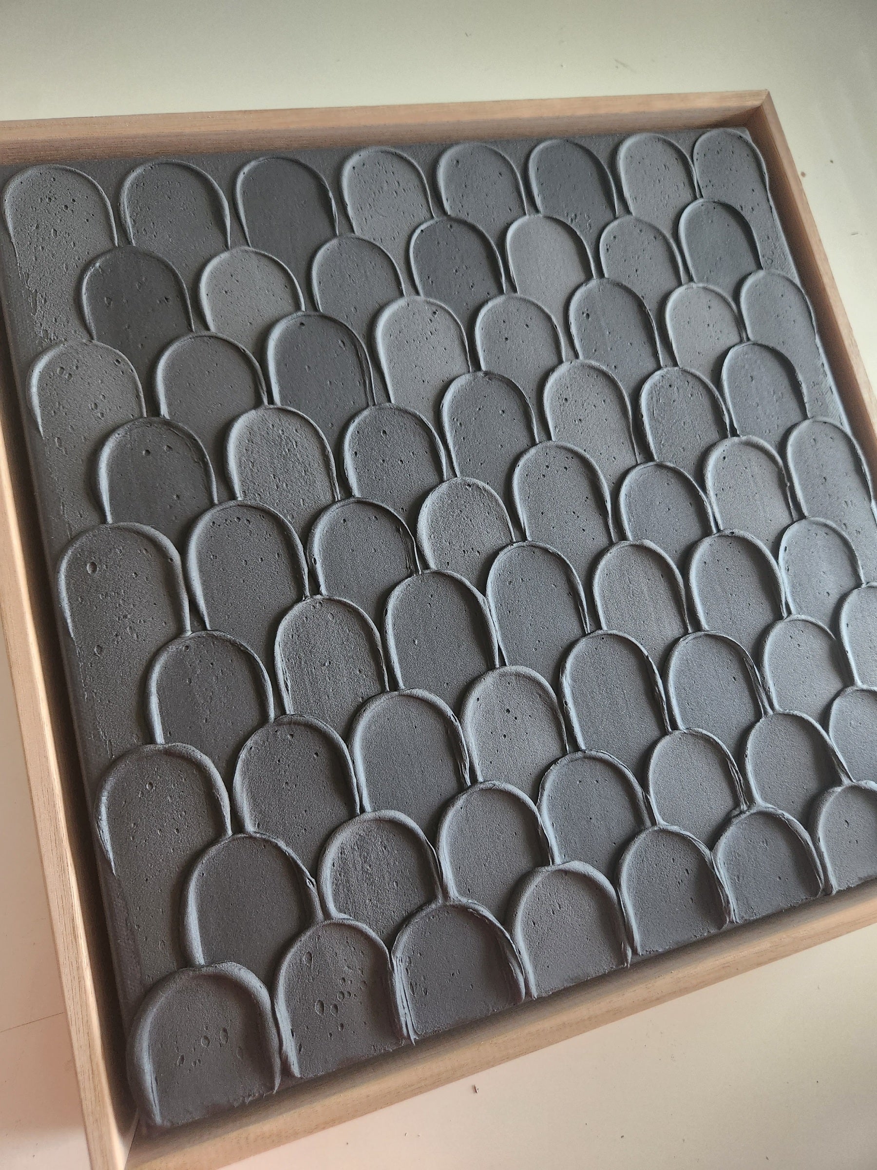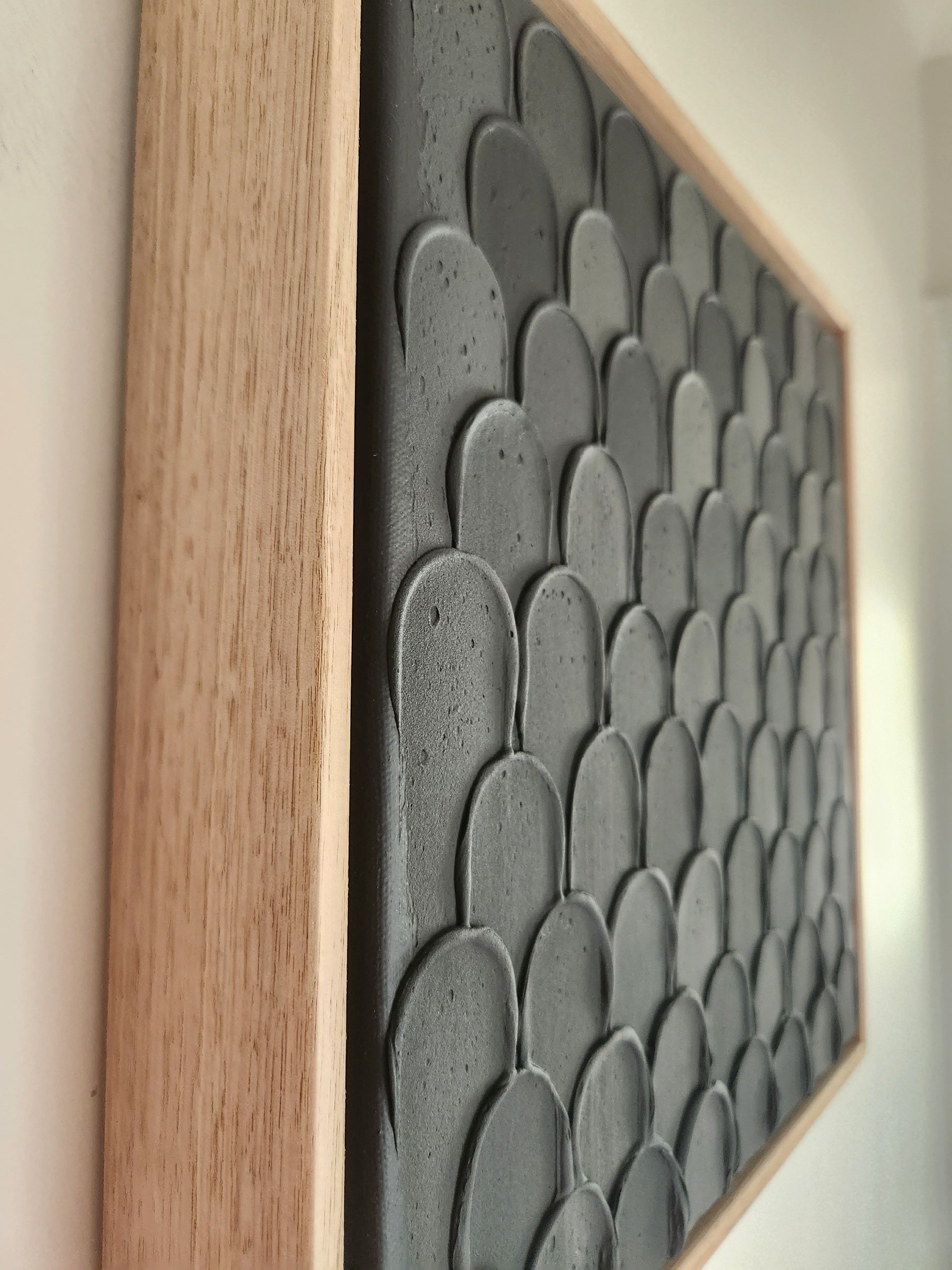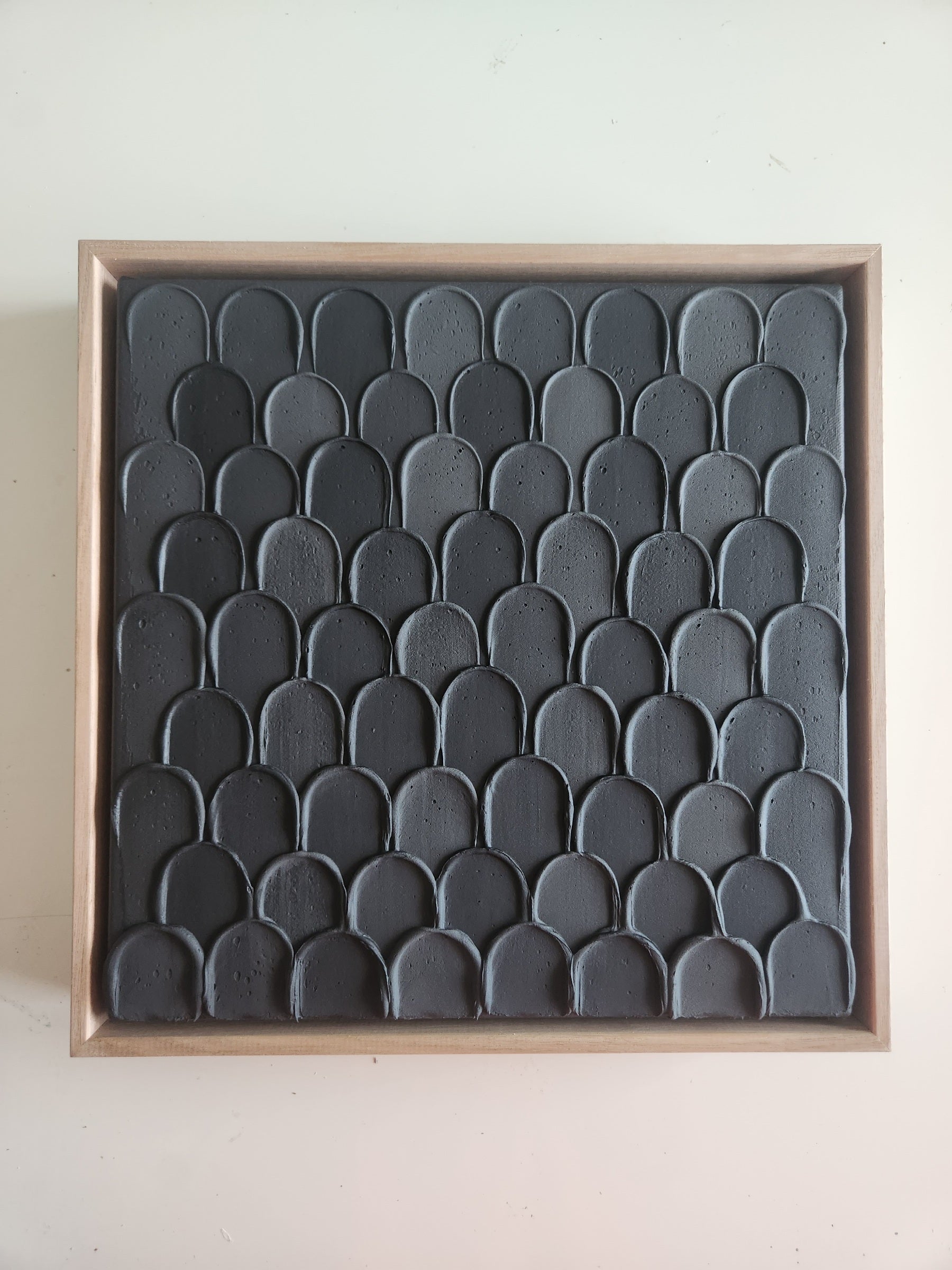 This art piece showcases an abstract texture, capturing the experience of being lost in a bustling crowd. The piece incorporates black tones.